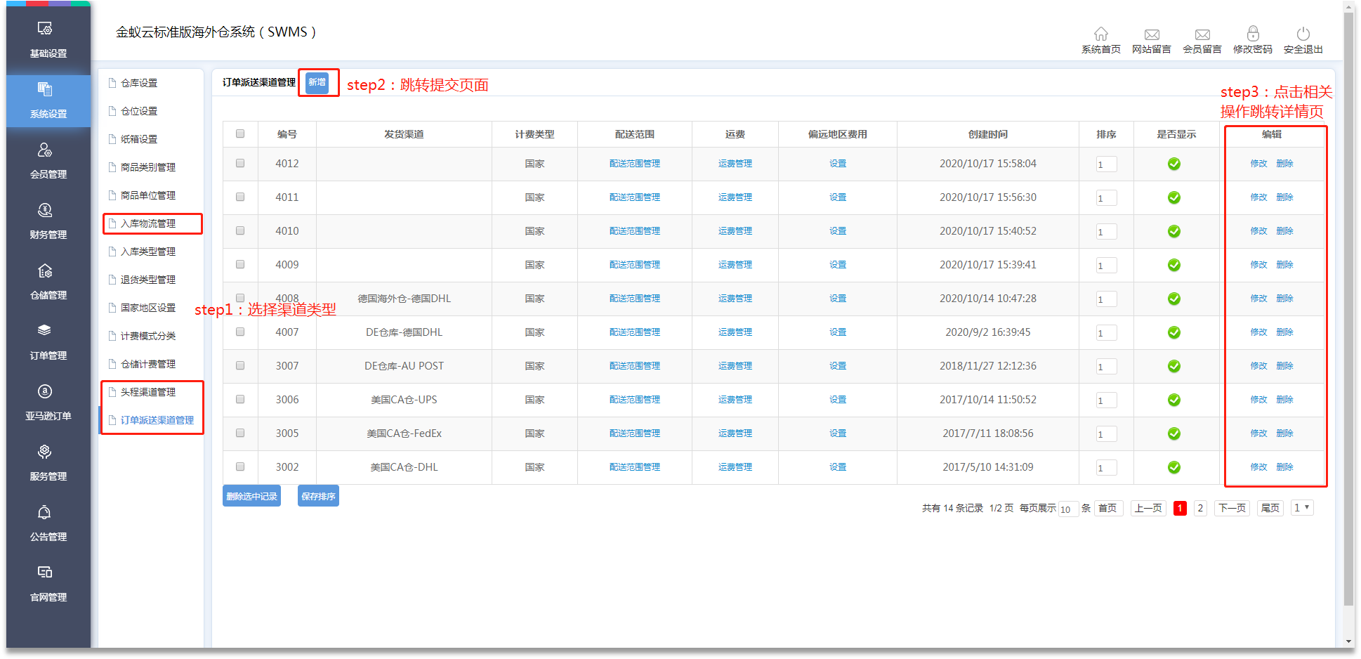 海外倉系統標準版(管理端)操作說明:物流渠道設置