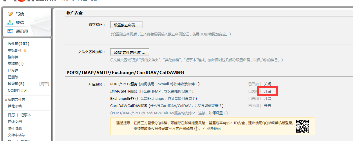 第二步:然后點(diǎn)擊到賬戶,然后選擇IMAP,點(diǎn)擊開(kāi)啟
